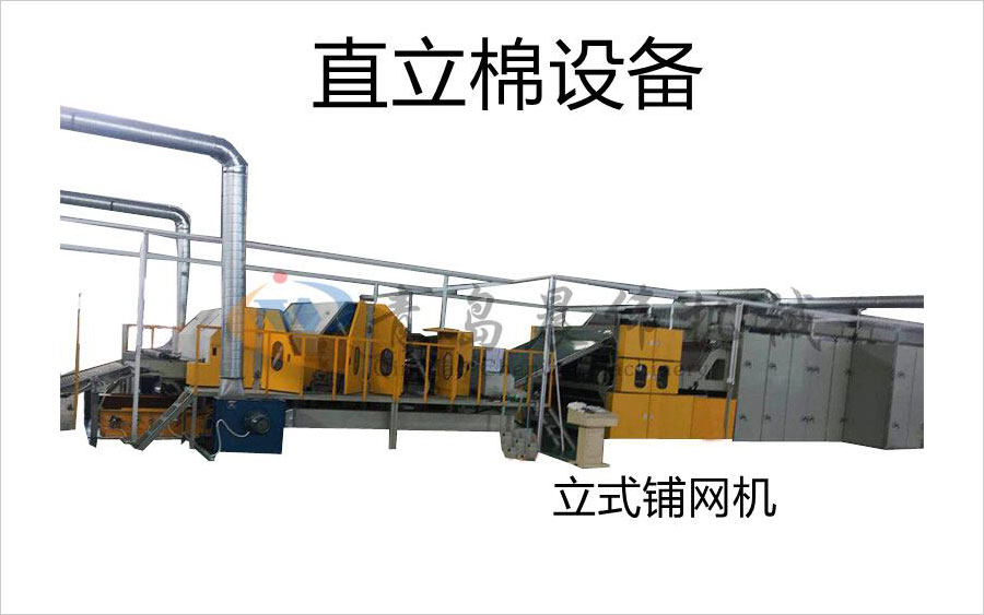 開包機(jī)-開松機(jī)-振動給棉機(jī)-梳理機(jī)-立式鋪網(wǎng)機(jī)-烘房-成卷切片機(jī)